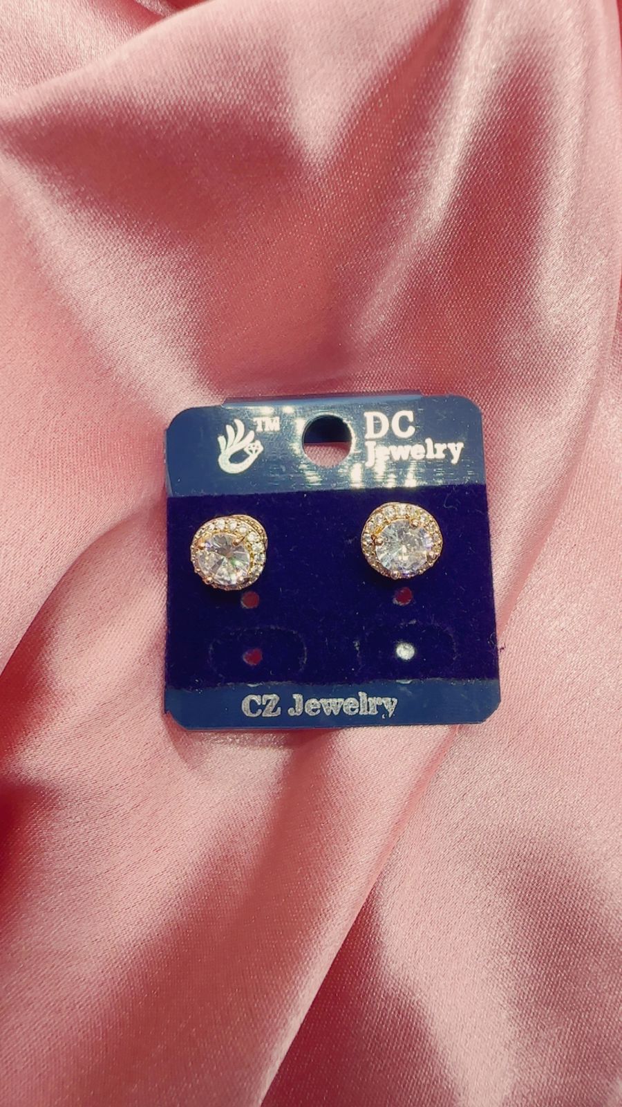 Embrace timeless sparkle with our Classic Halo AD Stud Earrings. These radiant gold-toned studs feature a brilliant round-cut American Diamond at their center, elegantly encircled by a shimmering halo of smaller pave-set AD stones. Perfect for everyday wear or adding a touch of sophisticated brilliance to any occasion.