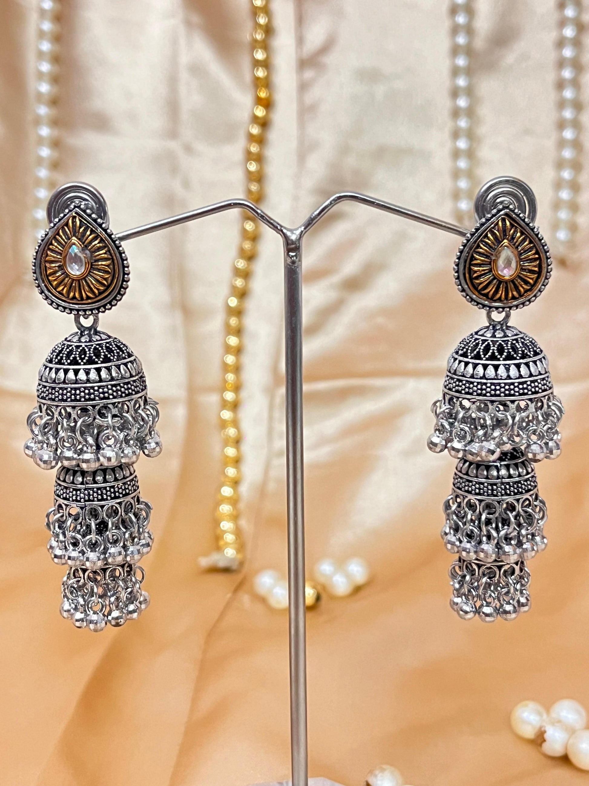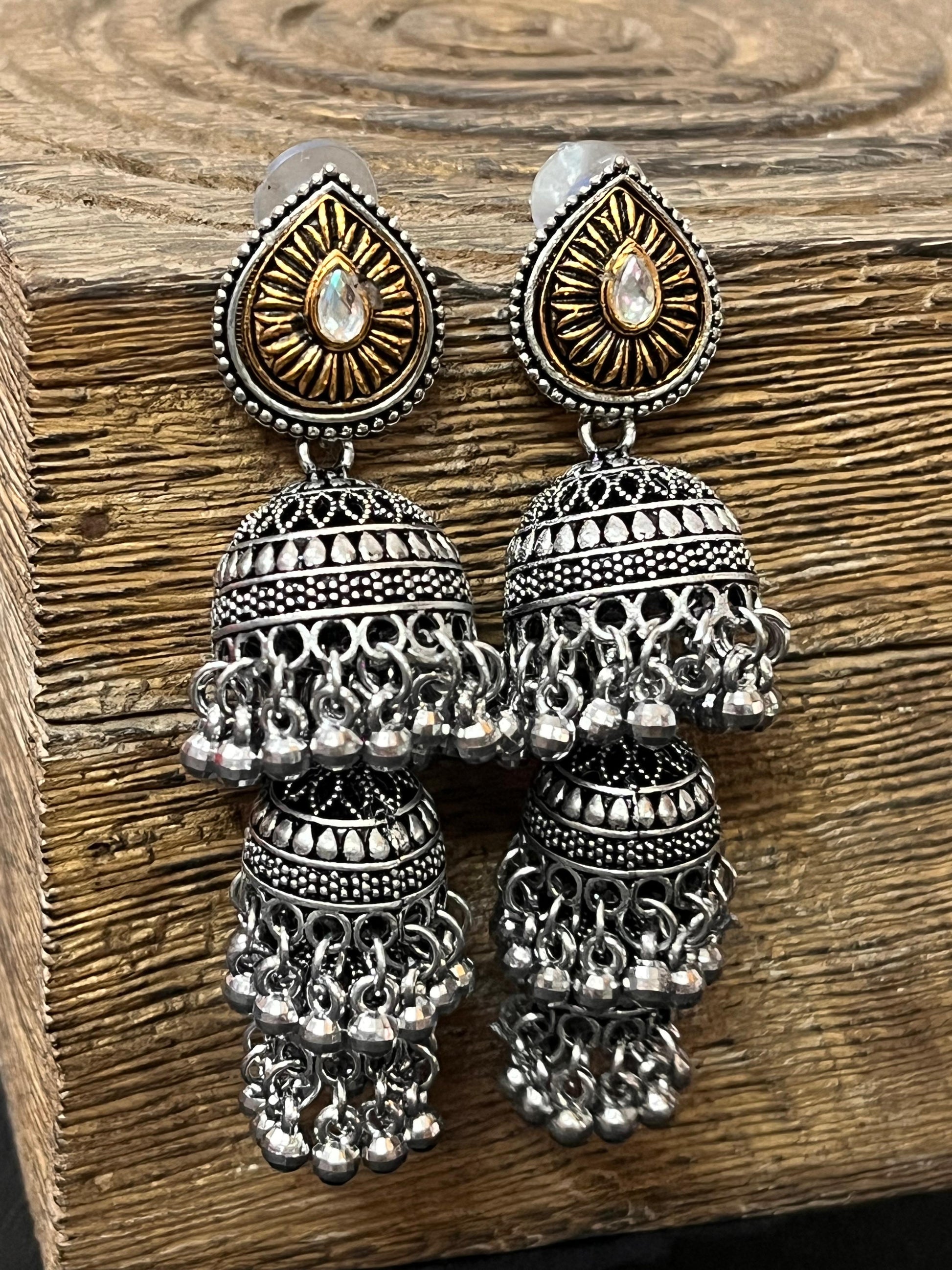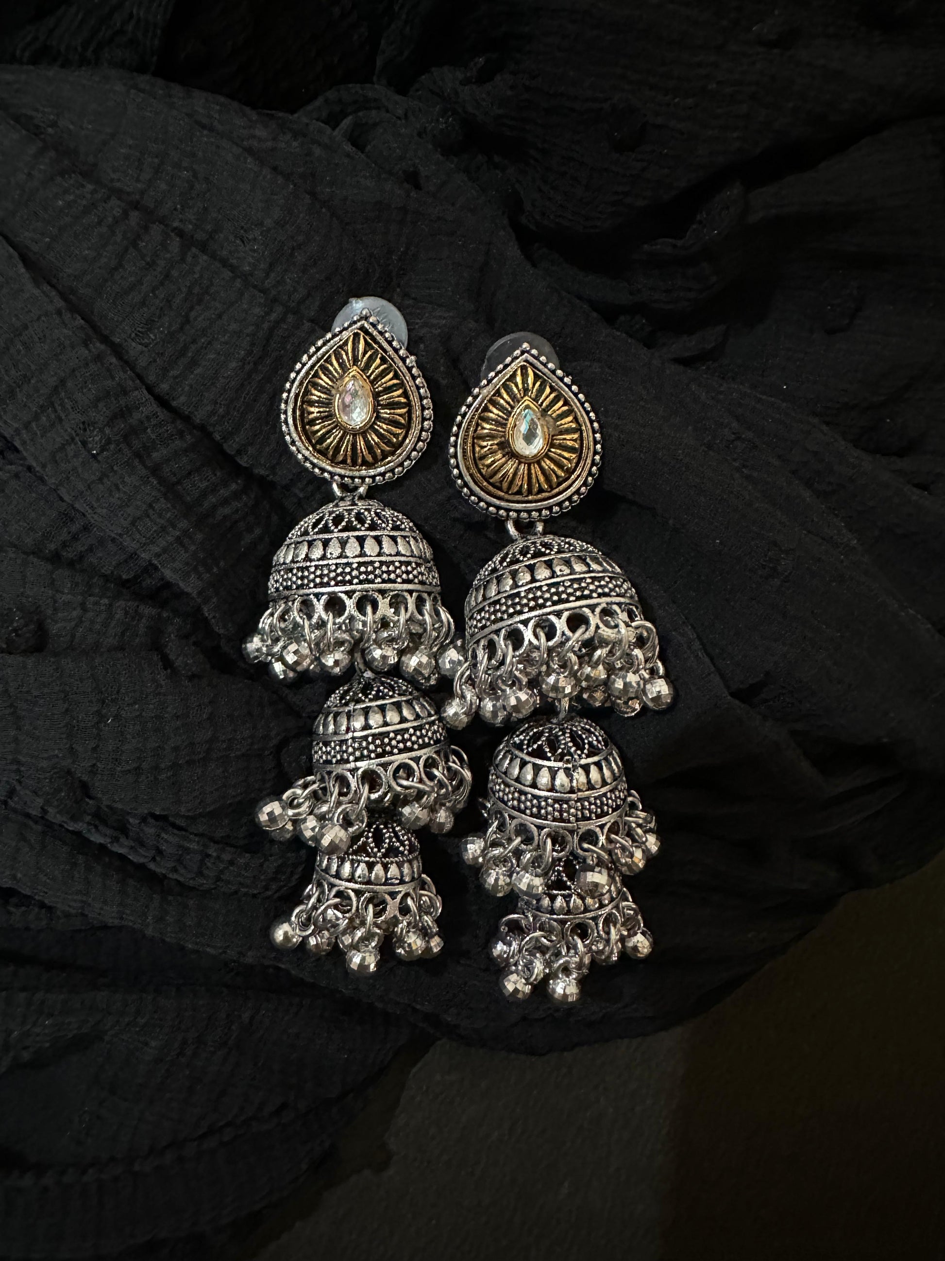 Dual-Tone Oxidized Jhumka Earrings