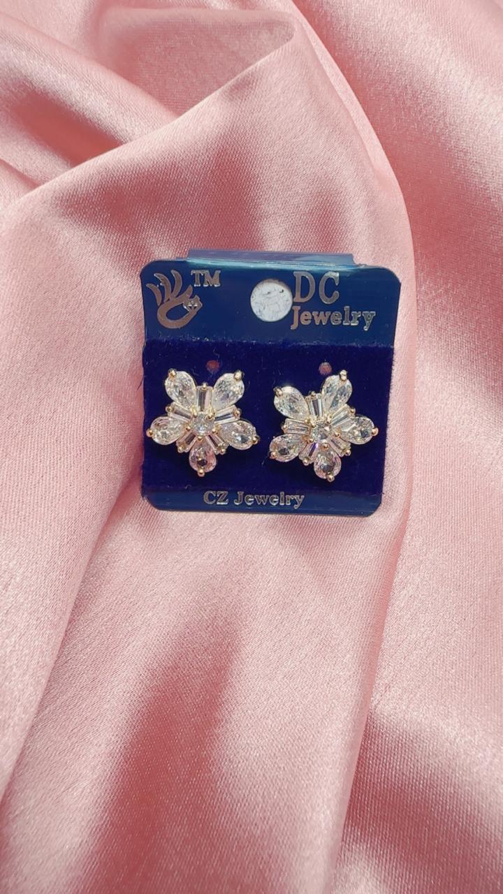 Bloom with brilliant charm in our Floral Sparkle AD Stud Earrings. These enchanting gold-toned studs feature a captivating flower design, meticulously crafted with various cuts of sparkling American Diamonds that catch the light from every angle. A versatile choice for everyday elegance or adding a subtle touch of glamour to any outfit.