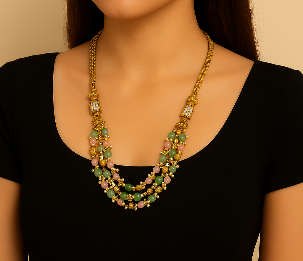 Gulabi Harit Bead Temple Necklace Set (Matar Mala)