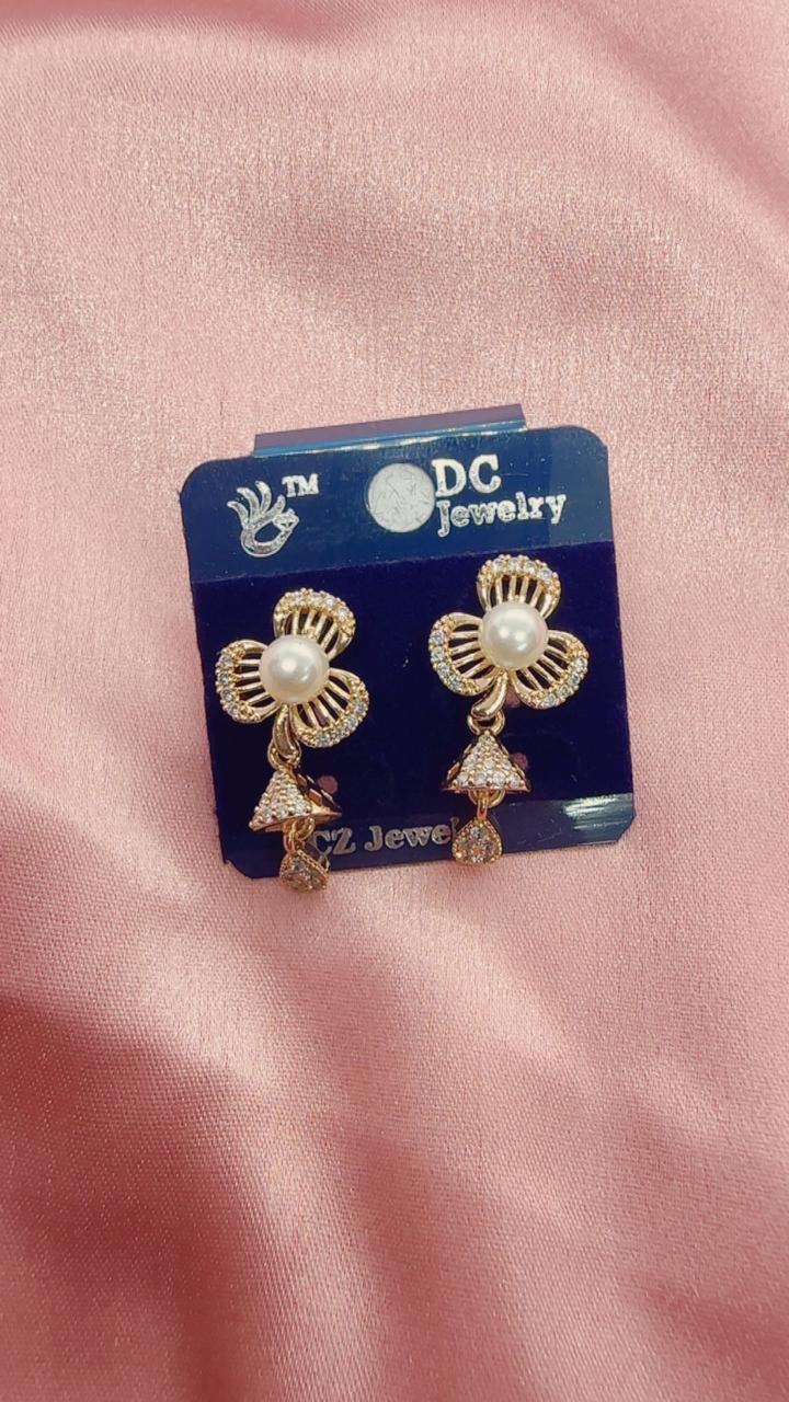 Pearl Blossom AD Jhumka Drop Earrings