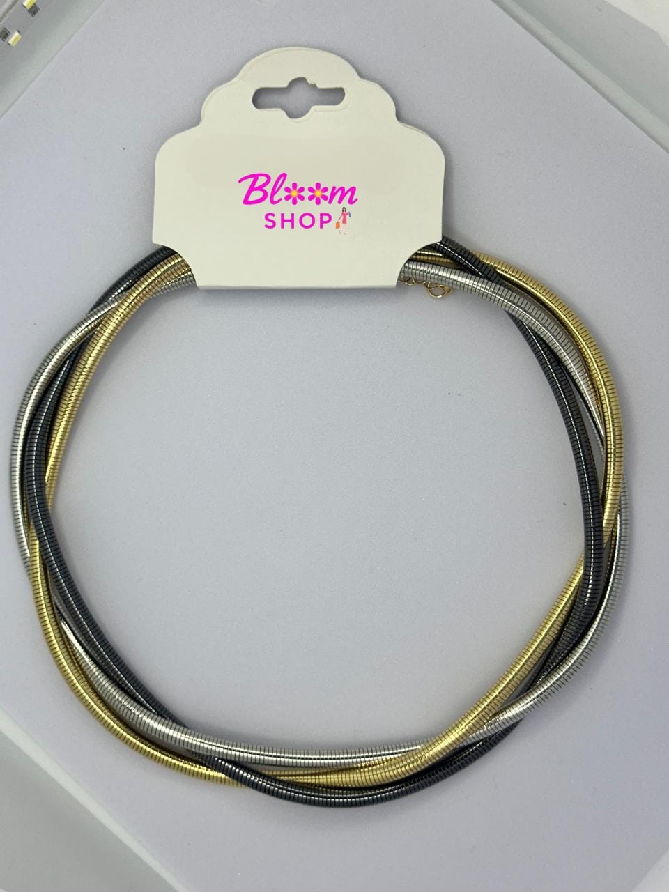 Elevate your everyday style with our Tri-Tone Coil Statement Necklace. This captivating piece features multiple strands of flexible, coil-design chains in radiant gold, sleek silver, and sophisticated gunmetal. Its versatile design makes it the perfect accessory to complement any outfit, offering a modern twist on classic elegance.